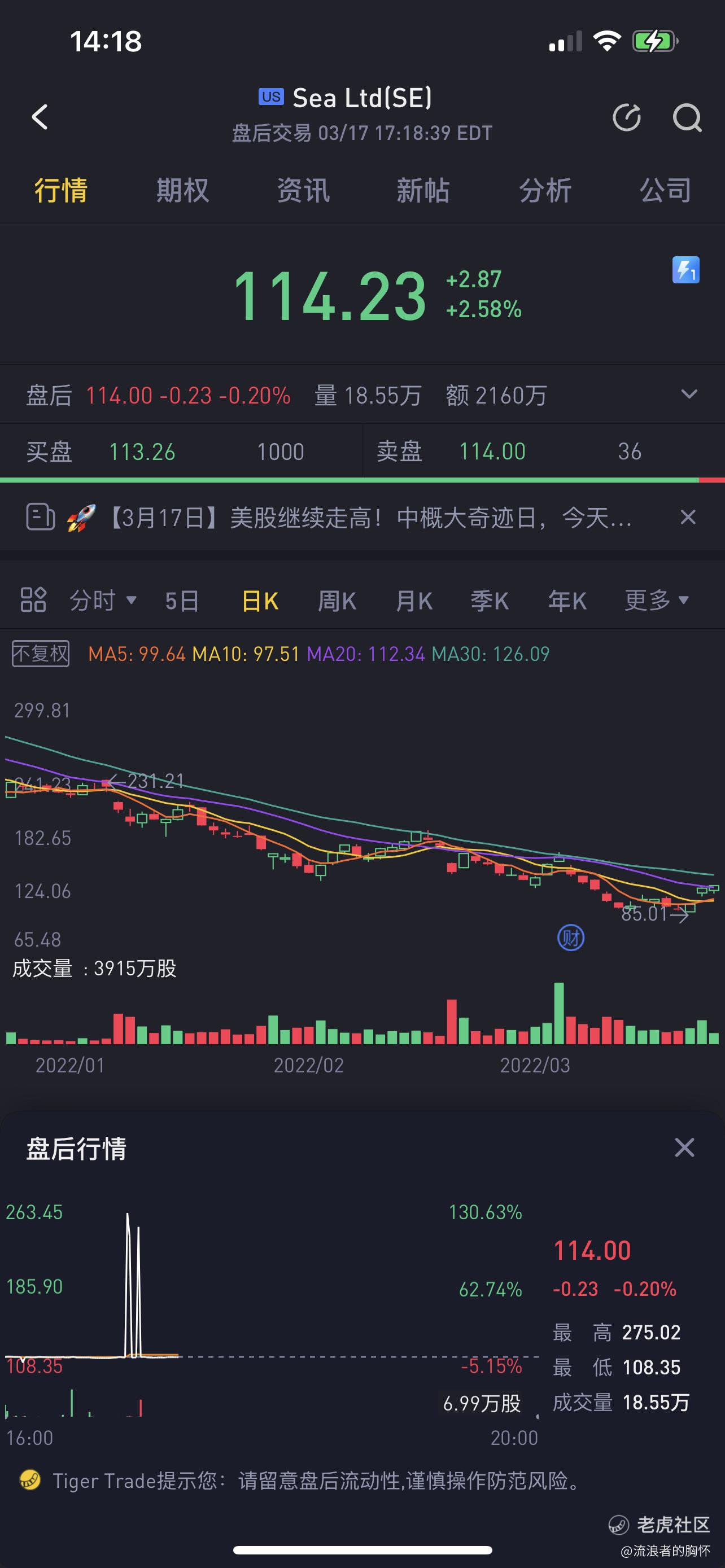 盘后行情老虎🐯显示出最高价格后查询系统没有成交
