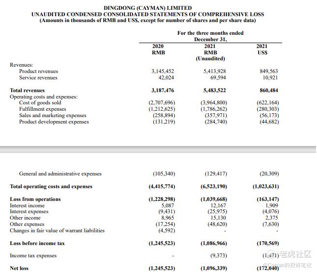 叮咚买菜2021年第四季度财报主要收入和业务运营数据