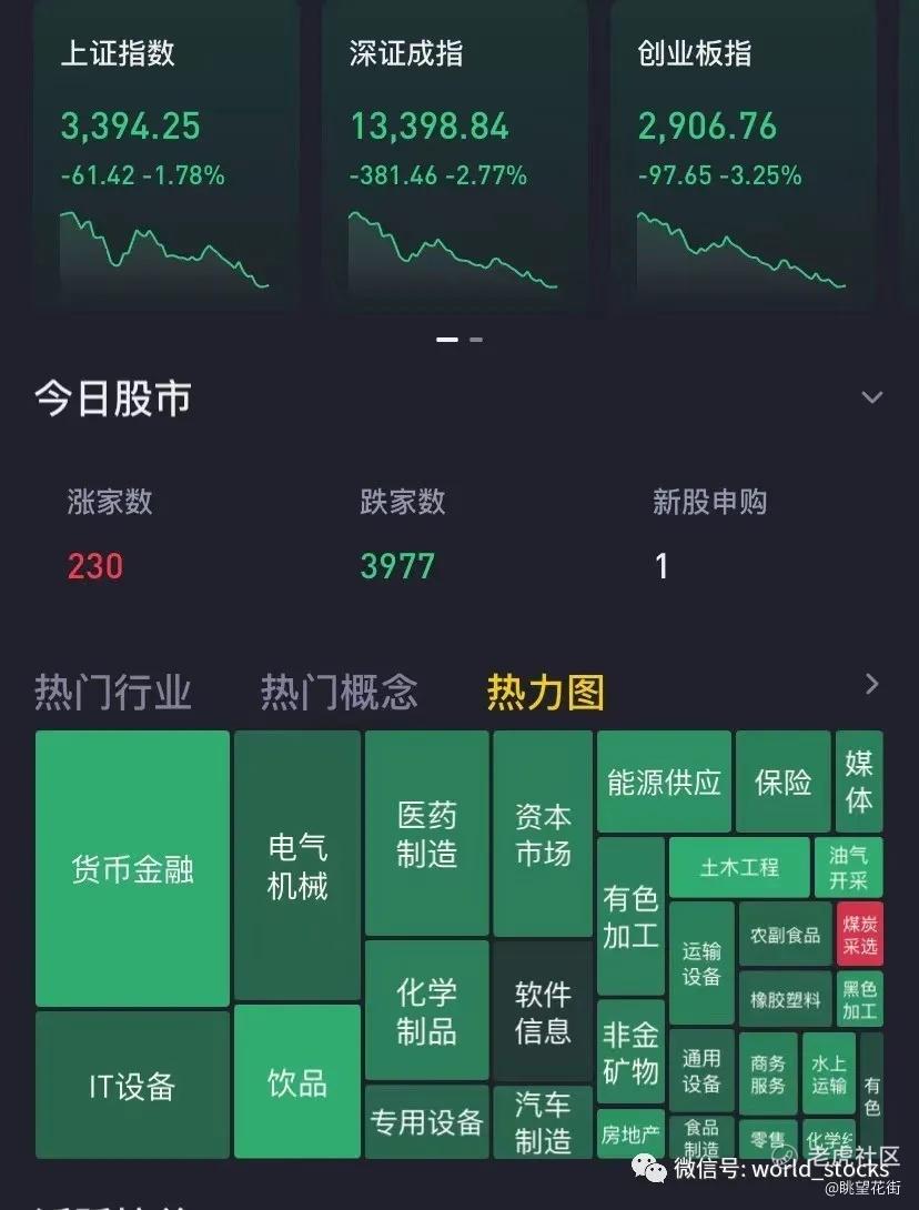 上证指数经上个交易日短暂调整后,进入继续下跌-61.42,跌幅-1.78%至3394.25点,目前还没看到什么积极的信号。只留下一堆段子。