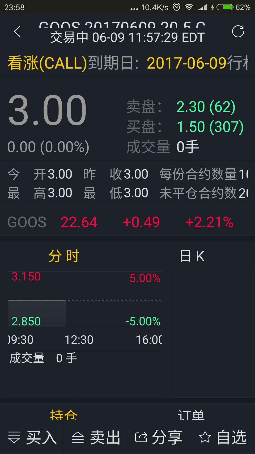 那个1.5就是我卖的,3卖不了,我直接卖1.5立马成交,价格就拉到1.5了,9号到期的,已经卖了