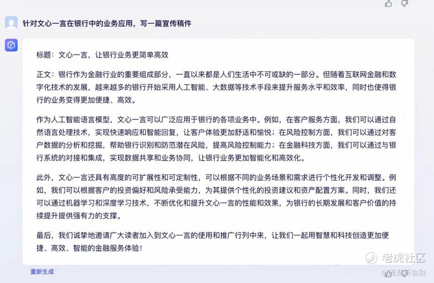 问题五:针对文心一言/ChatGPT在银行中的业务应用,写一篇宣传稿件。