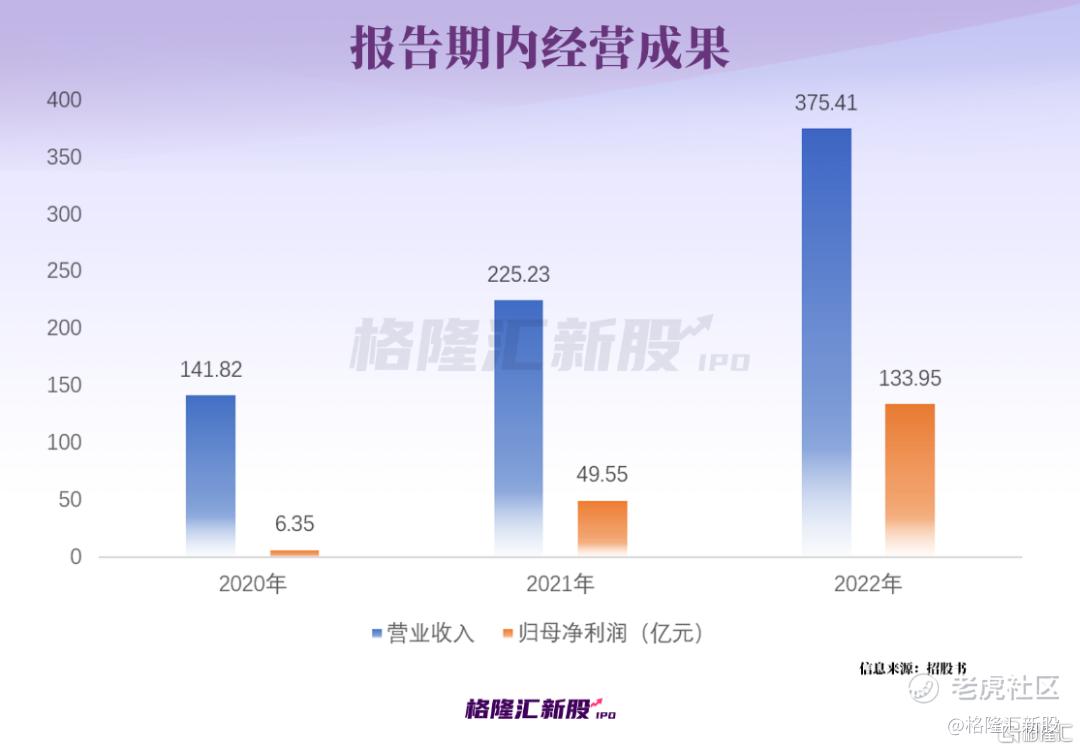 具体来看,公司营收由2019年的141.82亿元增至2022年的375.41亿元,三年复合增速约62.70%;相应的归母净利润则由6.35亿元增至133.95亿元,三年复合增速高达359.29%。