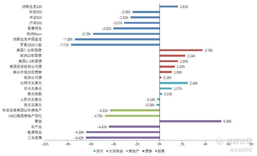 全部资产中,黄金与美债因其避险属性而表现优异。股票资产则普遍下跌,但在美股中分化尤其明显,中小银行权重高达16%的美国小盘罗素2000指数惨遭重创,而远离银行风暴的纳斯达克100指数则因美联储转向预期加之GPT-4的强势登场,录得正收益。