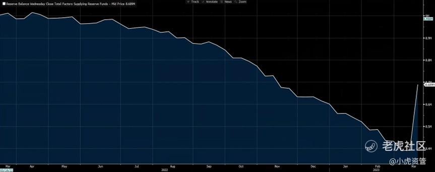 事实上,美联储近期推出的BTFP项目,已经大大抵消了美联储缩表的作用。该项目让面临流动性压力的银行可以通过抵押其浮亏的美国国债和MBS,从美联储获得面值为这些资产抵押价值、利率为OIS+10bps的贷款。这实际上就是重新扩表,体现在其资产端的Primary Credit和BTFP项目资产增加。根据截至3月15日的美联储最新资产负债表,其总资产在一周内增加了近$3000亿,接近其去年4月中开始的总缩表规模$6250亿的一半。