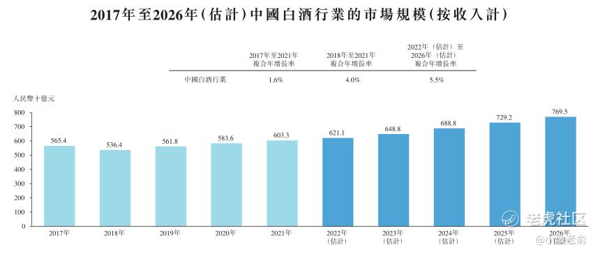 过去数年,政府加强监管规定,间接影响白酒行业的消费及销售。“三公消费政策”及《关于开展消费品工业“三品”专项行动营造良好市场环境的若干意见》对中国白酒行业产生影响。白酒行业的市场规模由2017年的人民币5,654亿元减少至2018年的人民币5,364亿元。同时,中国白酒市场的市场参与者数目由2017年的1,593名减少至2021年的965名。政府对白酒的开支减少,令消费转向商务聚会,且亦为白酒行业的稳定健康发展奠定基础。因此,按收入计,中国白酒行业的市场规模由2018年的人民币5,364亿元增加至2021年的人民币6,033亿元。