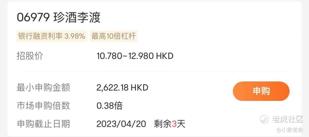 公司4月17日开始招股,招股价是10.78~12.98港元,每手股数200股,最低申购金额2622.18港元,市值352.65亿~424.62亿港元,发行数量4.91亿股,属于酒精饮料行业,有绿鞋,无基石。