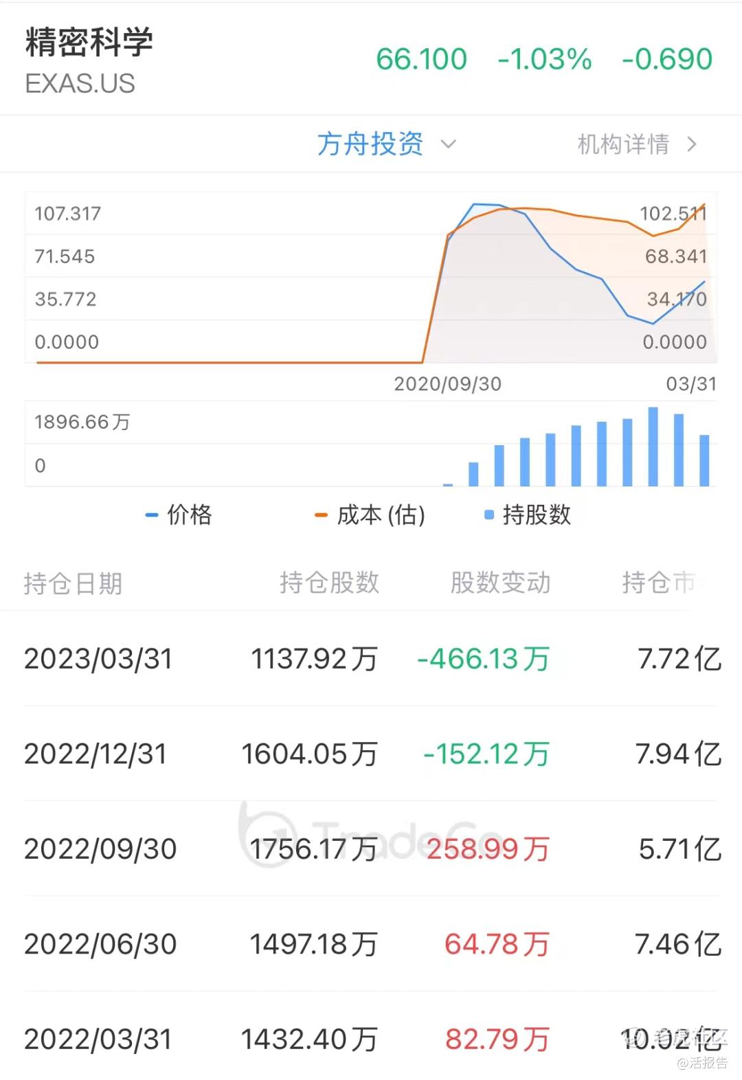 二、精密科学遭ARK持续减持,已退至其第6大持仓