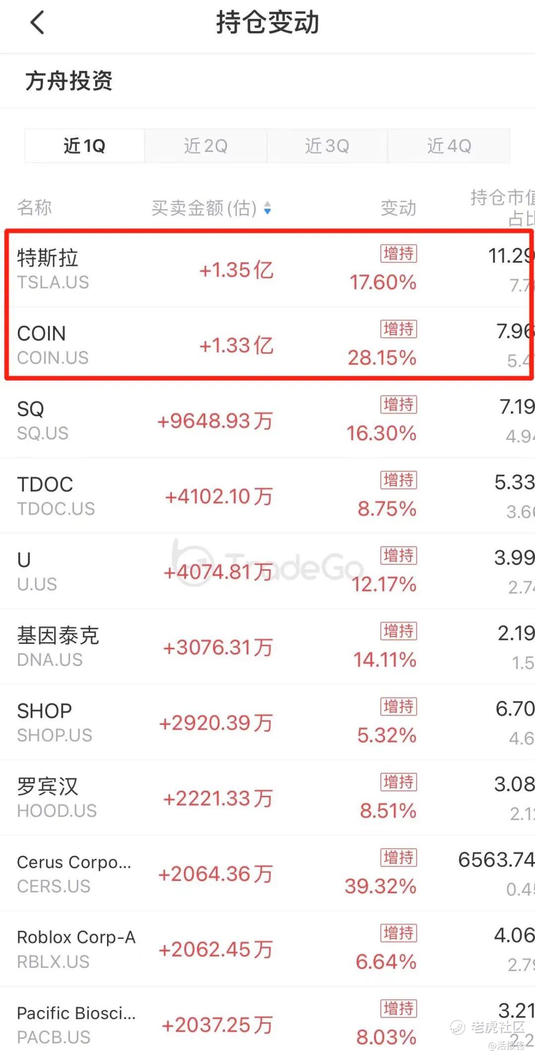 一、大举增持特斯拉和Coinbase等,特斯拉仍为第一重仓股