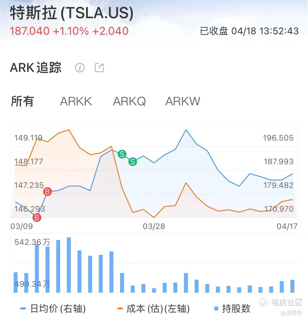 对于“爱股”特斯拉,ARK在一季度的增持超过80万股,但以主动交易来看,3月下旬出现了两次大幅度的减持,23日及24日各卖出特斯拉约13万股及14万股。不过目前特斯拉仍牢牢占据ARK的头号重仓股之位,占投资组合比重超过7%。