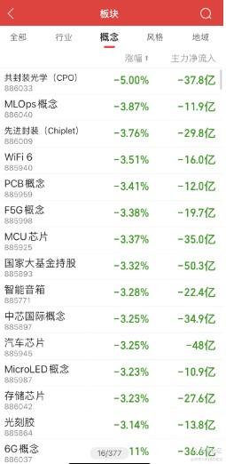 当日概念板块的跌幅榜中,主要是泛科技为主,包括半导体芯片、人工智能相关等。