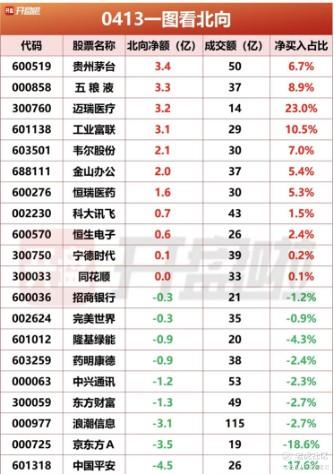 饮料制造的话,主要是白酒这一块。包括当日北向在4月13日买入最多的是茅台和五粮液。