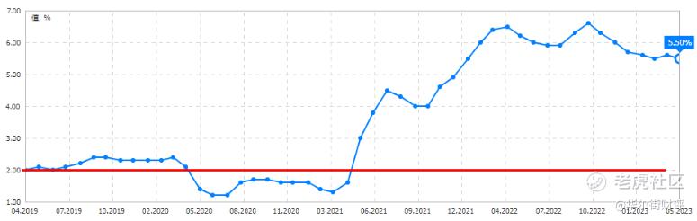 美国4月未季调核心CPI年率 5.5%,持平预期5.50%,略低于前值5.60%。