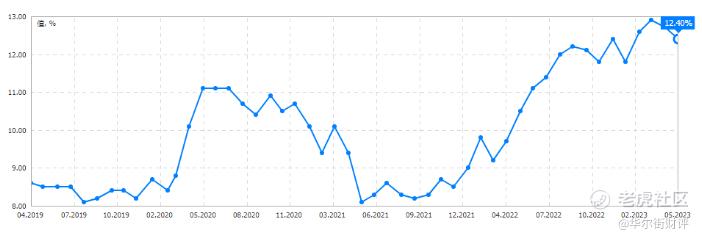 4月M2货币供应年率 12.4%,略低于预期12.50%和前值12.70%。