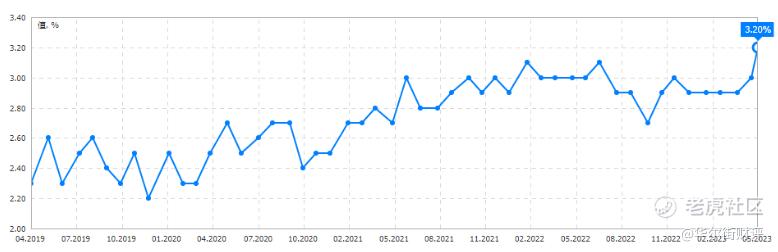 5年期通胀预期值3.2%,高于预期2.9%和前值3%,暗示通胀的顽固。