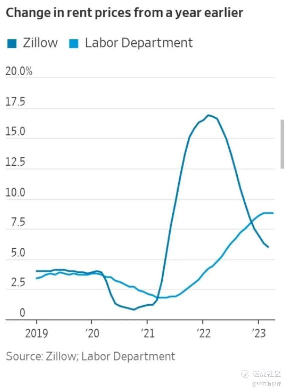 其中本次住房通胀在CPI中的权重为34.586%,住房通胀主要体现在房租的上涨上,从下图看美联储看中的劳工部数据已经《开始要露出涨幅见顶》的迹象。