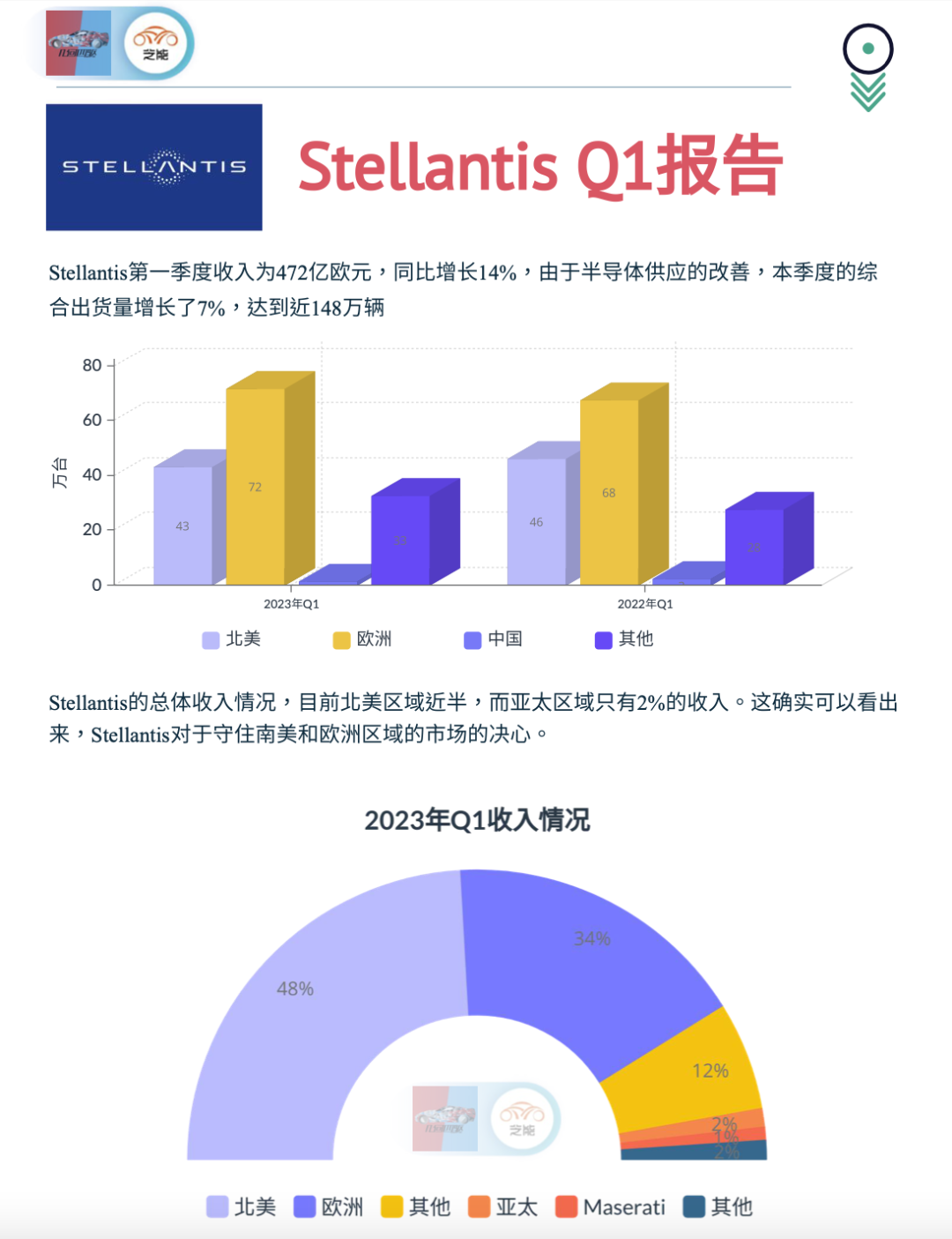 ellantis在北美区域的收入接近一半,而亚太区域仅占2%。这清楚地反映出,Stellantis正在努力巩固南美和欧洲区域的市场地位。