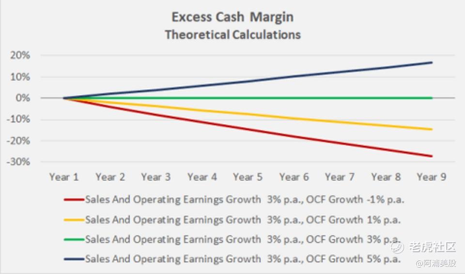 对于那些对现金流和收益取证感兴趣以发现潜在收益问题或会计欺诈的人,分析师想简要介绍一下超额现金保证金 (ECM)。这是衡量营业收入和 OCF 的相对增长率的指标。ECM 可以通过从相应的经营现金流量中减去每年的经营利润并除以当年的销售额来计算。