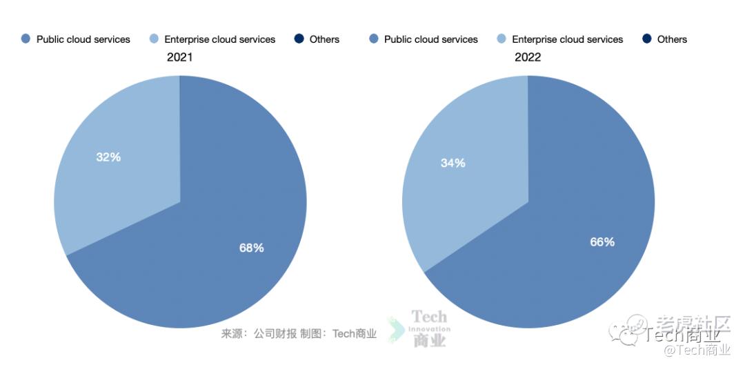 按收入占比来看,本财年公有云服务收入占比为66%,相较上一财年占比的68%,本财年占比有所下降。而行业云服务本财年收入占比为34%,上一财年占比为32%,本财年该项占比有所提升。