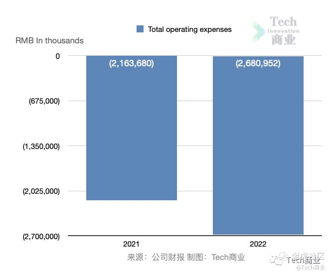 该公司2022财年总营业费用为27亿元,上一财年为22亿元,本财年总营业费用增长24%。