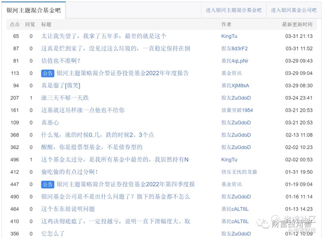 基金业绩没增长,反而拉大亏损,基民怨声四起,有基民表示,太让我失望了,我拿了五年多,最差的就是这个。也有基民表示,这个基金太过分,是我所有基金中最差的,我居然持有N年。更有基民表示,银河基金公司是不是出什么问题了?旗下的基金都不怎么样,这只以前很不错的,现在也变成这鬼样。5年了不分红,这钱都亏没了,铁公鸡一毛不拔。