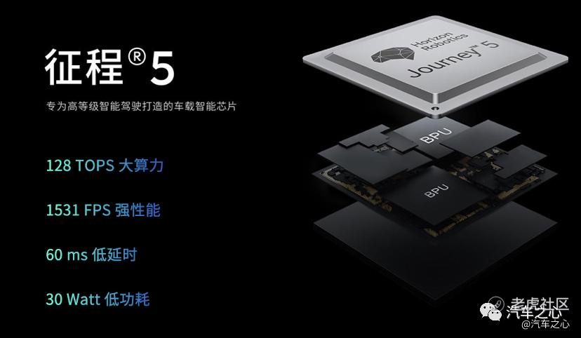 征程 5 是地平线面向高等级自动驾驶打造的第三代车规级产品,单颗芯片算力高达 128 TOPS,在传感器上,支持多达 16 路摄像头的感知计算,还开放支持毫米波雷达、激光雷达等多类传感器融合感知。