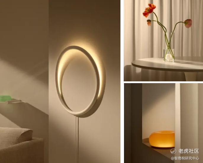 宜家与设计师Sabine Marcelis合作打造的雕塑感照明产品,瞄准的正是这样的需求。比如设计有调光功能的“旺布利”LED壁灯,它用了不一样的两种玻璃,青铜色玻璃散发出暖黄光,另一块有色镜面玻璃的作用是捕捉自然光线,然后反射到房间中。
