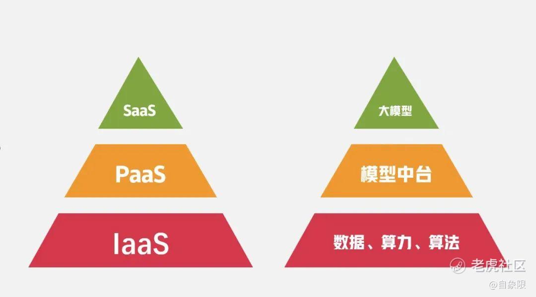 如果我们把大模型看作一个云产品,那么数据、算力、算法可以被看做是这个产品的“IaaS”,即基础设施。而在“基础设施”和前台应用的SaaS之间,还存在一个PaaS平台作为中间层,承担起为SaaS提供部署平台,开发工具等任务。
