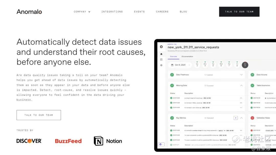 Notion是Anomalo的核心客户之一,Notion是国外最大的All in one 办公软件,国内的飞书学习的就是它。其软件工程师对此评价到“Anomalo团队的功能、集成数量和响应速度够非常强大,用户易于导航并找到他们正在寻找的内容。”