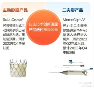心泰医疗经导管植入式主动脉瓣膜系统处于临床实验阶段,预计23Q4向药监局递交申请;