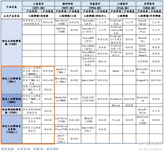 经心尖二尖瓣夹修复系统(TMVr-A)处于临床实验阶段,预计23Q4向药监局递交申请;