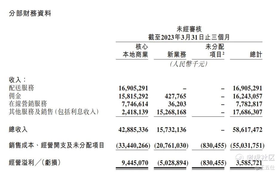 $美团-W(03690)$ 5月25日消息,美团于今日港股盘后公布2023第一季度业绩。财报显示: