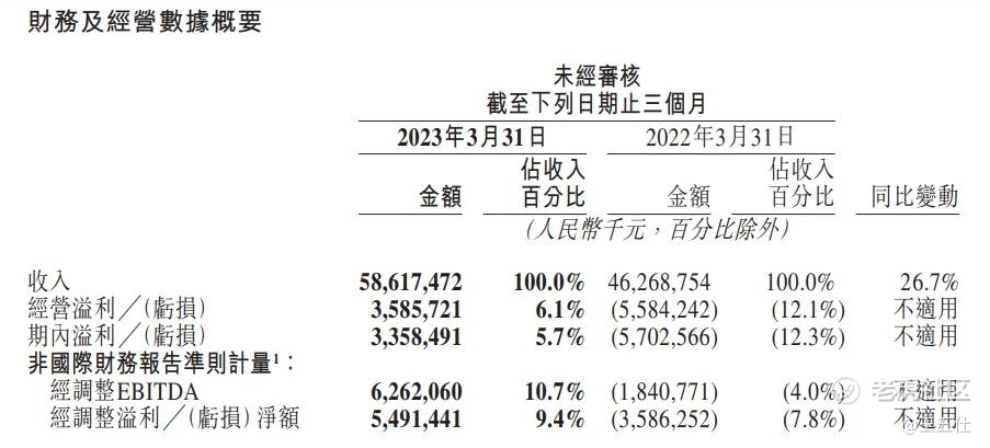 2023年第一季度,新业务分部收入同比增长30.1%至人民币157亿元。该分部经营亏损同比收窄40.5%至人民币50亿元,而经营亏损率则继续改善至32.0%。