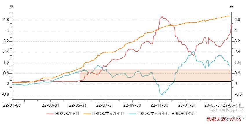 港元市场利率滞后于美元市场。