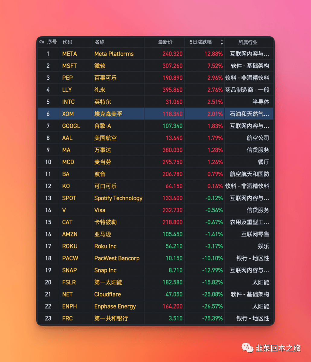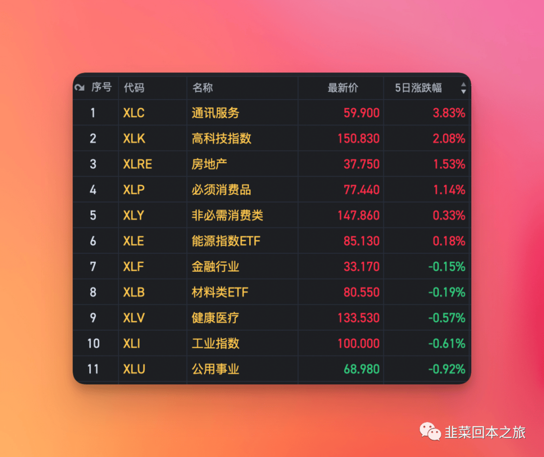 通讯板块本周被 $Meta Platforms(META)$ 财报大涨带动起来。