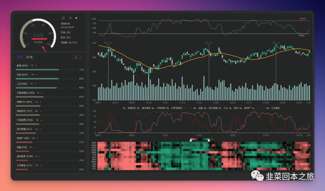 使用 Breadth 可以查看每天大盘的整体市场宽度。
