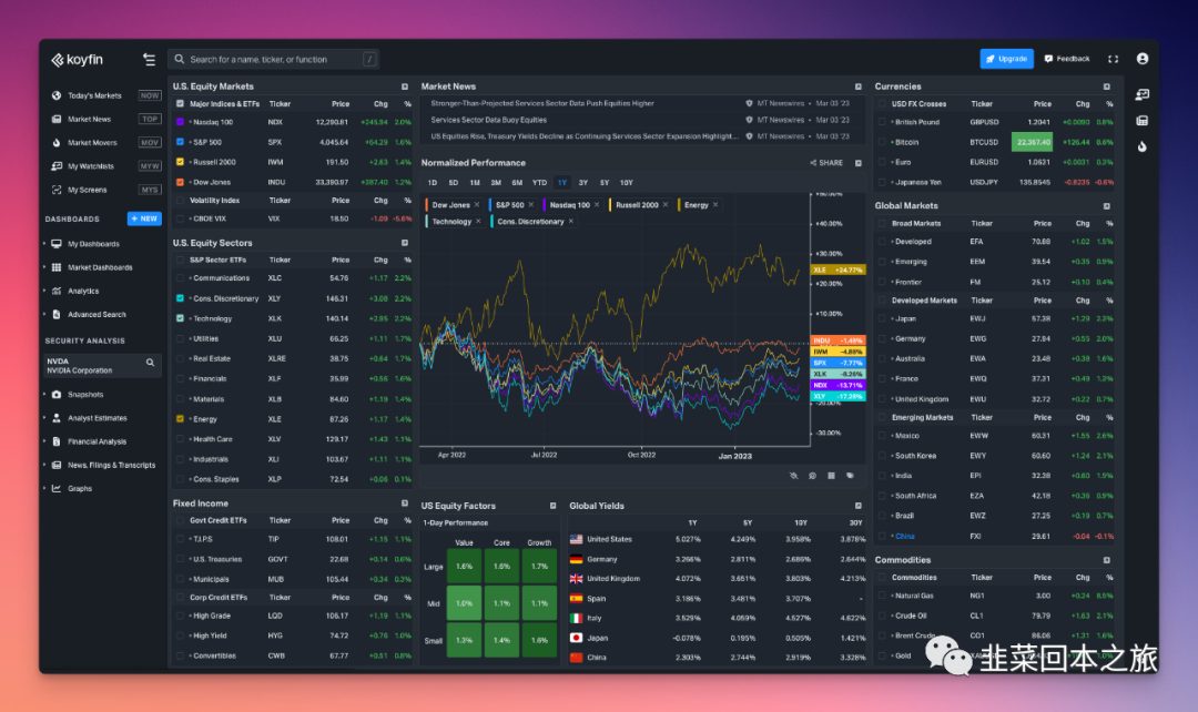 Koyfin 提供了金融市场数据分析,是一个了解市场大盘走势很好的工具,免费版基本够用。