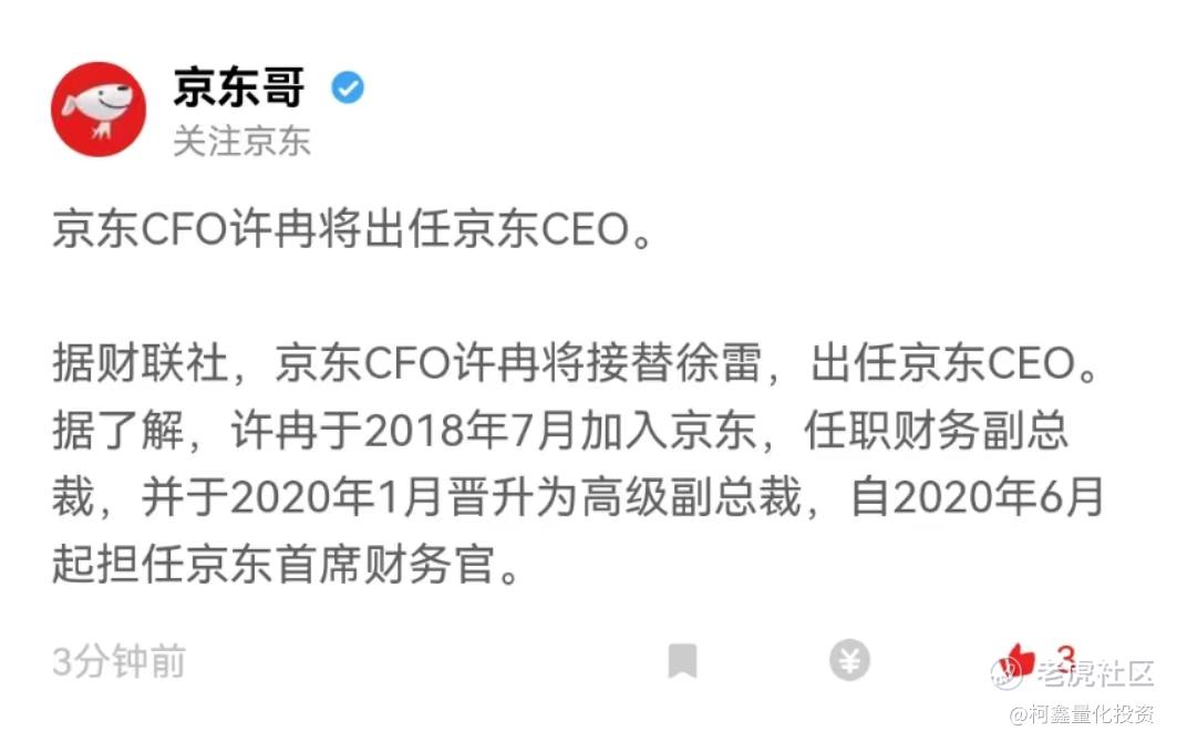 许冉在加入京东之前,曾在多家知名企业担任高管职位,包括中兴通讯、高德地图等,在加入京东后,许冉通过对公司业务的深入了解和对财务管理的专业知识,为公司的发展做出了重要的贡献,毋庸置疑许冉在京东财务管理和投资者关系方面表现出色,也成功地帮助公司实现了多项战略交易和财务目标,期间也一直致力于推动公司的财务管理和业务的发展,成分的展现了卓越的领导才能和专业素养,对于此次的人事变动必然是京东集团,为了进一步推动公司战略发展而做出的重要决策,许冉作为京东重要高层领导人,也必将继续发展自己的专业优势和经验,为公司的长远发展贡献力量,同时,他的继任也标志着京东在管理层面的稳定和成熟,相信在许冉的带领下,京东将继续保持强劲的增长势头,为股东和投资者创造更大的价值,不过话说回来京东此CFO非阿里彼CFO,2018年才入伙的资历也不足以指挥京东个条业务线,应该是为东哥重回一线做配合的成分更大。