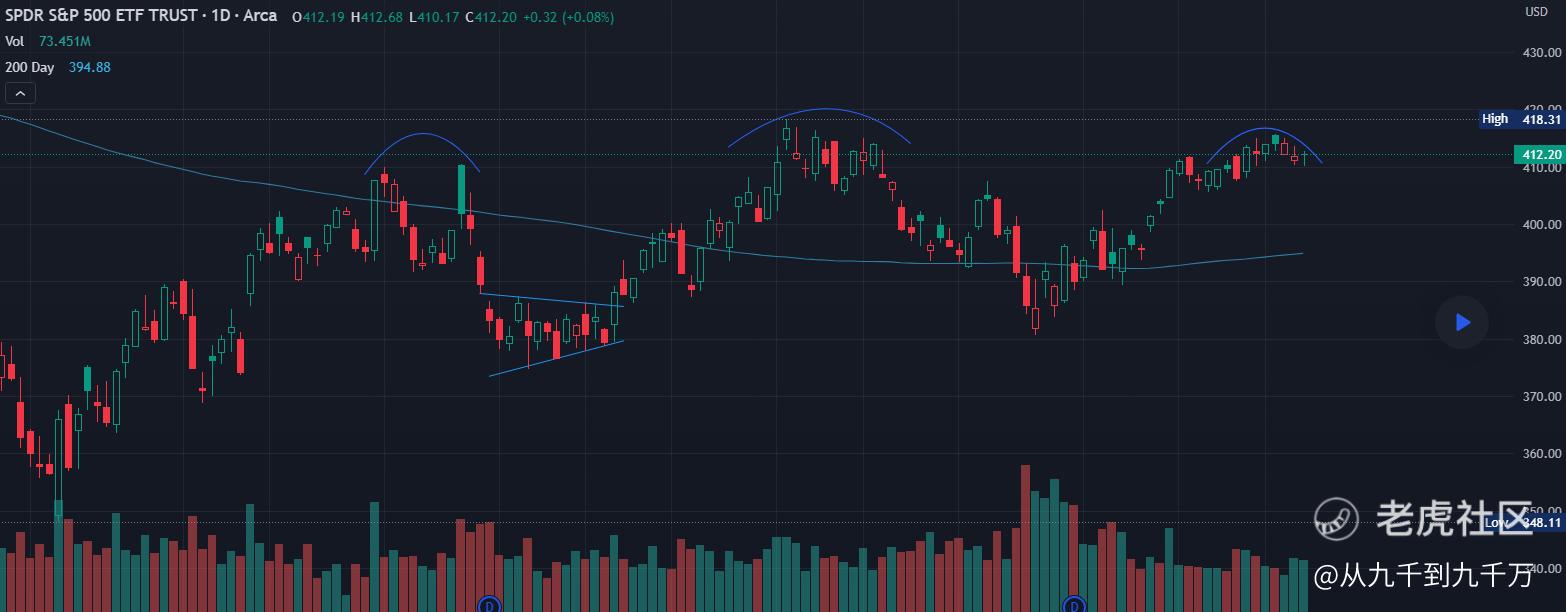 SPY我认为M顶形态明显,加上下周各大科技股财报,我认为谨慎看空,不建议交易日内,建议等待机会寻找空头趋势。