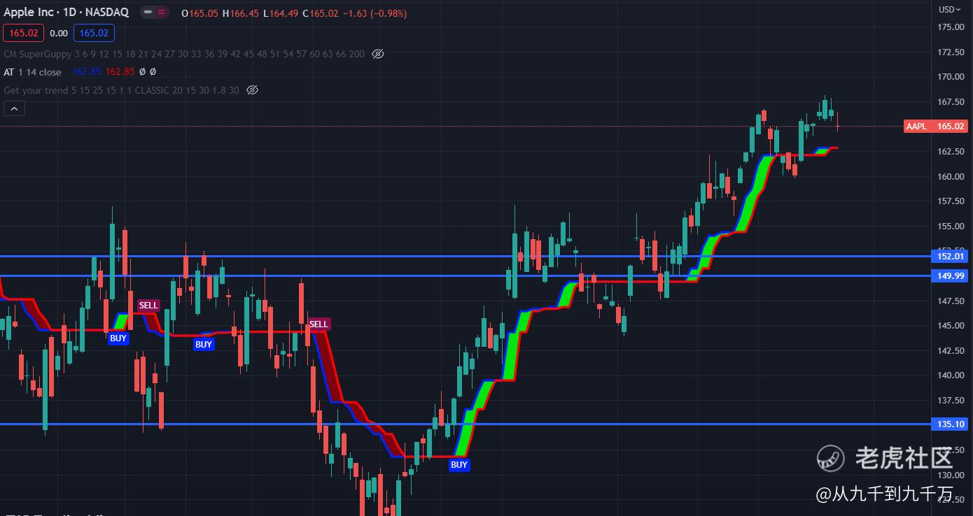 APPLE $苹果(AAPL)$ 收盘价为165美元,价格走势可能会继续在160-165美元的范围内波动,直到苹果发布财报。我认为在170美元以下没有什么好的交易机会,需要更多耐心。