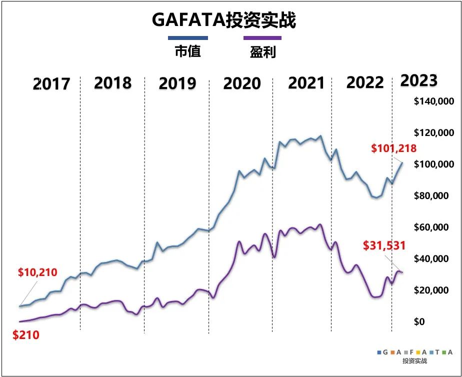 定期等额购买GAFATA。也就是说到了一个时间点,不论股价高低,购买入一定金额的股票。