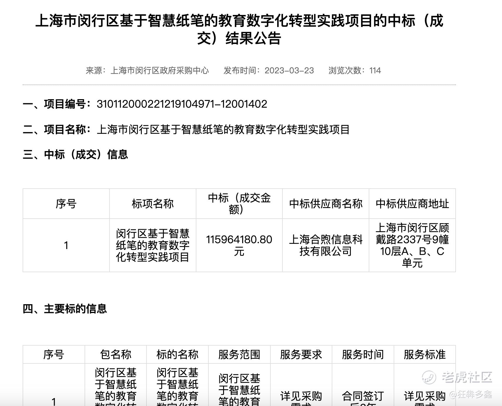 一起教育科技人民币1.16亿中标上海市闵行区基于智慧纸笔的教育数字化转型实践项目