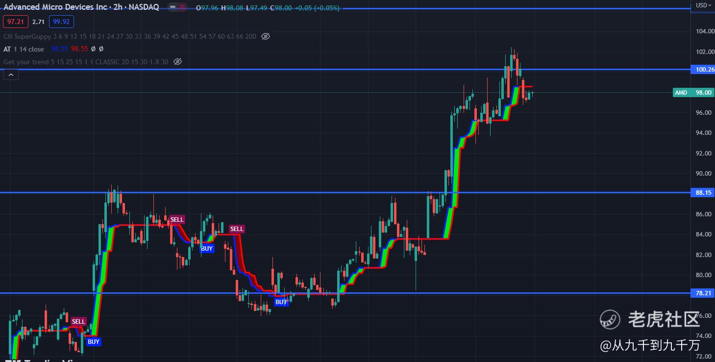 AMD $美国超微公司(AMD)$ 收盘价为97.5美元。上周,AMD测试了102美元的阻力位,但未能保持并在周五下跌至97美元。如果AMD跌破95美元的支撑位,可能会再次回撤到90美元。考虑购买看涨期权前,建议等待AMD收盘价突破100美元。如果AMD股价突破100美元,有望涨至105-109美元,此时可以考虑购买看涨期权。