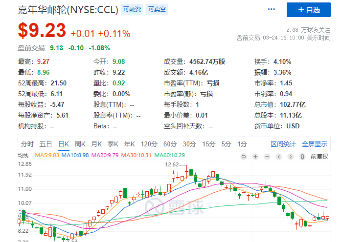 $嘉年华邮轮(CCL)$ 按道理来说,这是个后疫情时代的利好股。时代在进步,经济在好转,享受是人类有钱后不变的天性,且看K线走势,一直处于底部区域,正是价值投资的好时机,看好这个股票,如同我一样看好$爱彼迎(ABNB)$