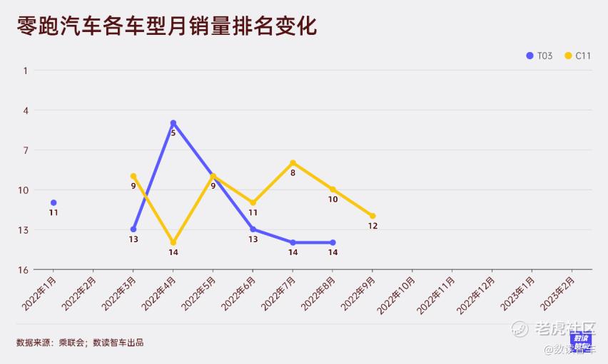 在乘联会的月度排名中,前九个月,主力车型T03和C11是常客,可10月开始,零跑再也没有哪怕一款车型上过榜。