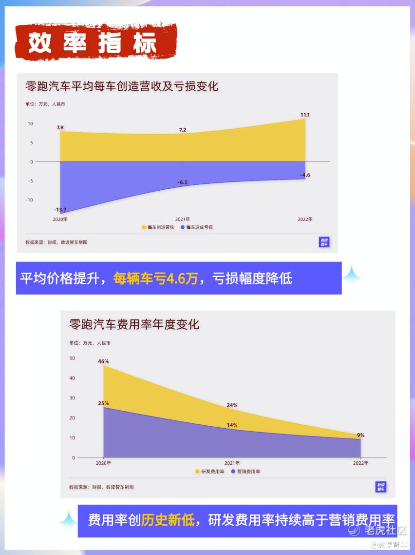 关键的是,虽然2022年的相关指标有所改观,但零跑每辆车仍然亏4.6万,整体亏损幅度还在扩大,毛利率仍然是负值。