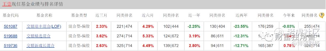 据天天基金网显示,截至3月22日,虽然王崇所管理的三只基金短期内业绩有所回升,但把时间周期拉长其业绩还是回落的,近两年来交银瑞丰混合(LOF)、交银精选混合、交银新成长混合基金收益率分别为-23.55%、-12.31%、-12.71%,受制于业绩下降,三只基金同类排名都较为靠后。