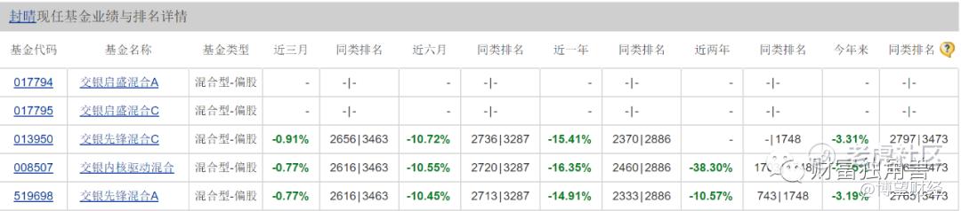 由于笔者写作之时,正值封晴新基金发行之际,然而,有基民却表示,睿智的封经理,你的新基发行即将截止,拭目以待发行结果,看看韭菜够不够多。也有基民表示,业绩没改善还想着发新基割韭菜,真以为大家的钱是刮来的么?笔者也是借着基金贴吧的这句话翻看了封晴经理旗下基金的业绩,果然是不太好。目前封晴管理的两只基金全部处于亏损状态。