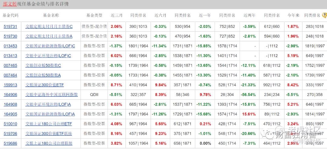据天天基金网显示,邵文婷目前管理10只基金产品,由于管理的基金众多,其业绩也不太理想,近一年来有8只基金是处于亏损状态,近两年居然有9只产品处于亏损状态,而交银中证海外中国互联网指数基金却跌超55%,同类排名倒数第一。