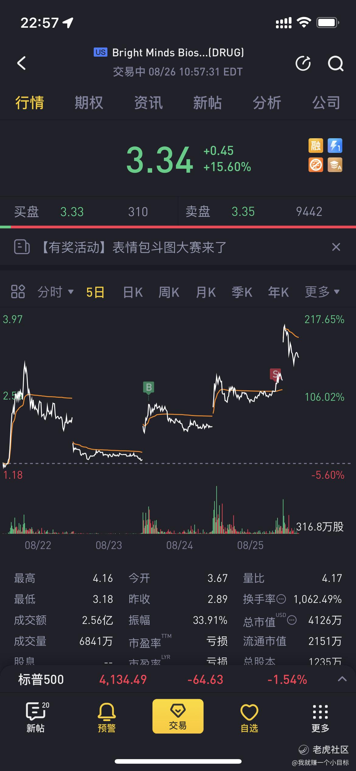 $Mobilicom Limited(MOB)$有点不争气哈,昨天放弃了$Bright Minds Biosciences Inc(DRUG)$而下注了你!错过了几大千美金,我依然不弃不离,等你空头爆仓!