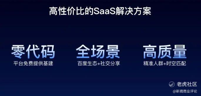 在信息与服务分发上,百度在端内、搜索、信息流等场景,针对不同服务类型、不同用户消费决策的周期和状态以及不同的需求表达,分别重新建设了服务的产品、服务检索以及推荐策略,为开发者提供高性价比的SaaS解决方案,这为开发者提供了更多的可经营和可玩性。